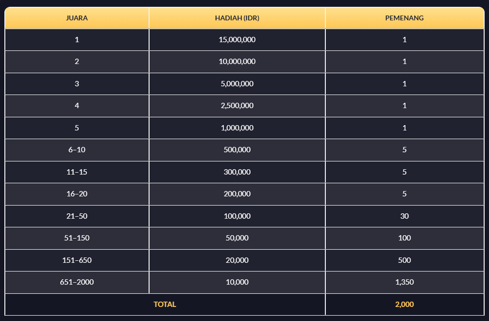 5. Pembagian hadiah dilakukan maksimal 2×24 jam setelah periode harian berakhir.